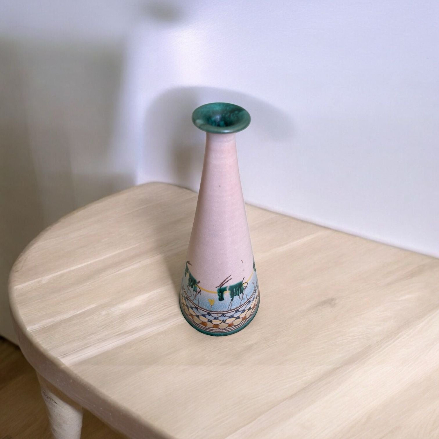 Hand-Painted Ceramic Vase – Tribal Motif Cone Design