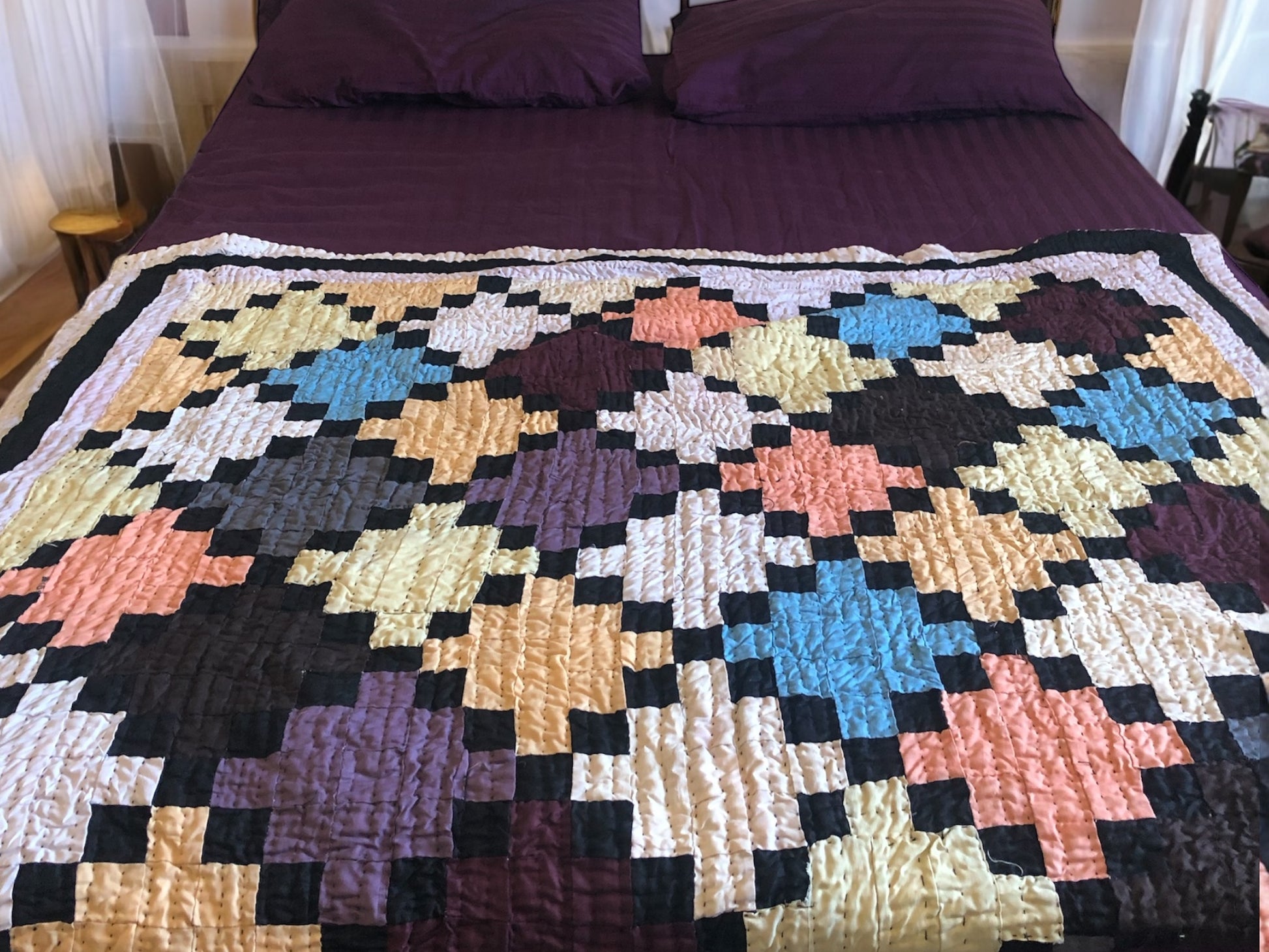 Handmade Sustainable Patchwork Throw Blanket – Vibrant Geometric Design