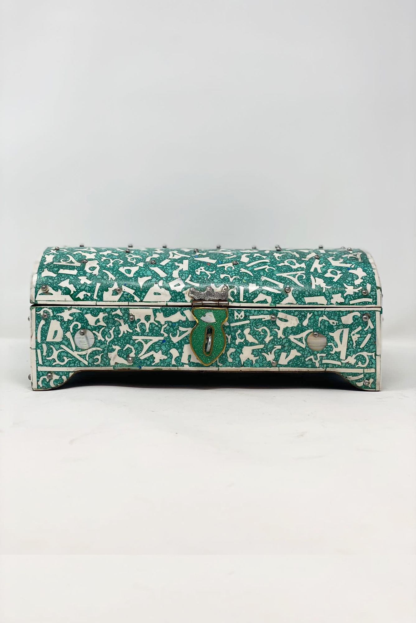 This intricately inlaid Vintage jewellery box is a one-of-a-kind accent that adds character to any interior. A rare find which is both pretty and unique way of storing your little treasures or to add as a statement piece in your home. A perfect gift to friends, family, or yourself.