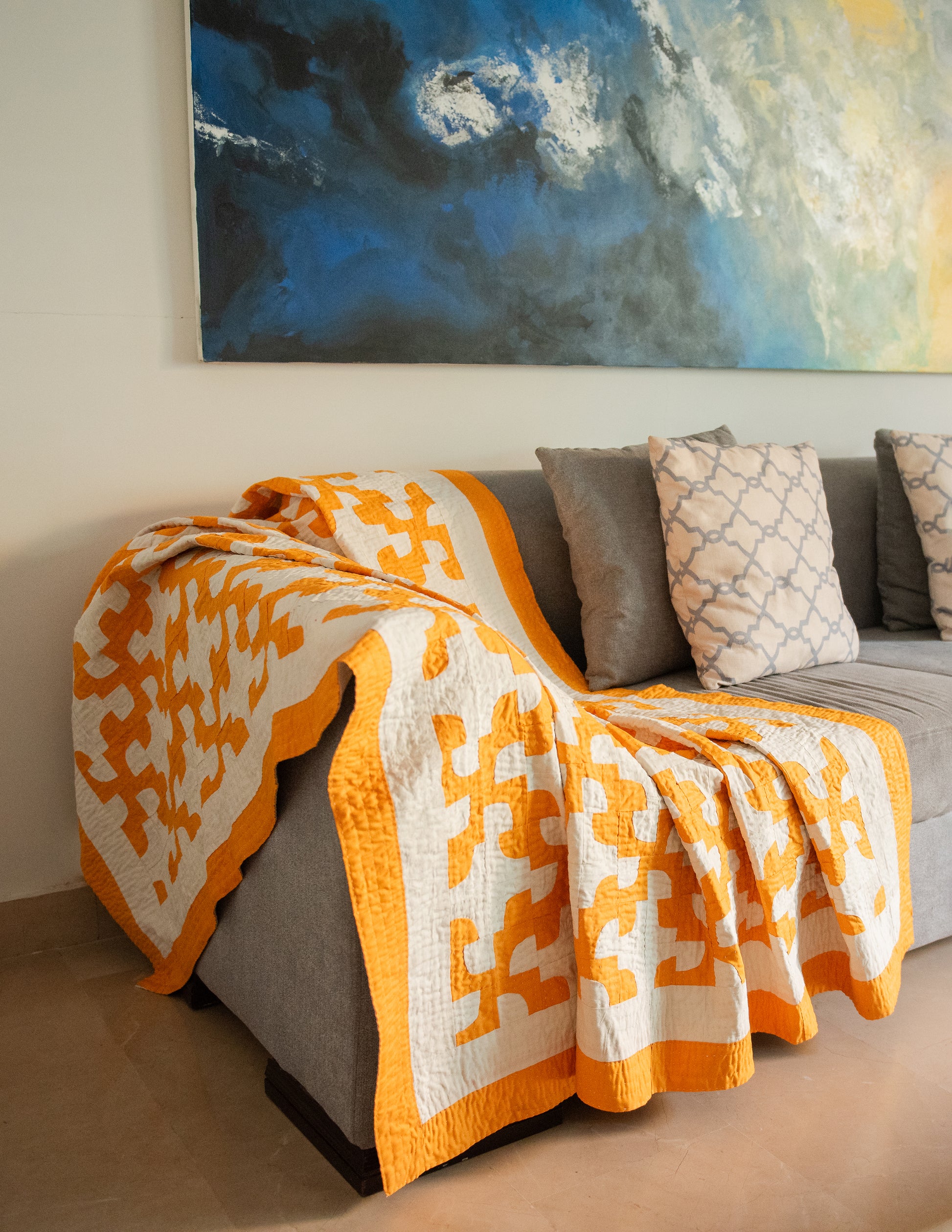 Step into the rich cultural tapestry of Sindh, Pakistan with our exquisite Mustard Ralli. Crafted with meticulous care by skilled artisans, this ralli boasts a mesmerizing mustard color palette.