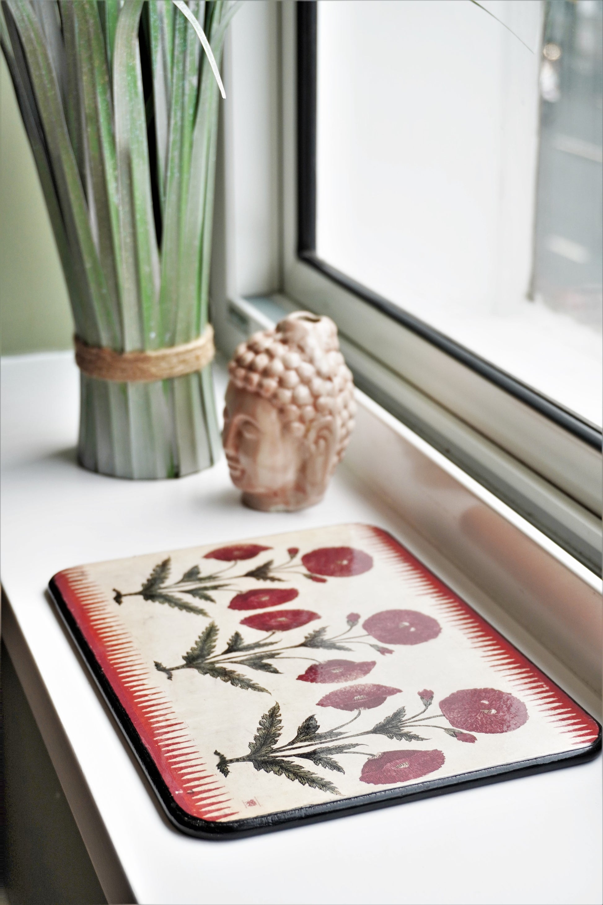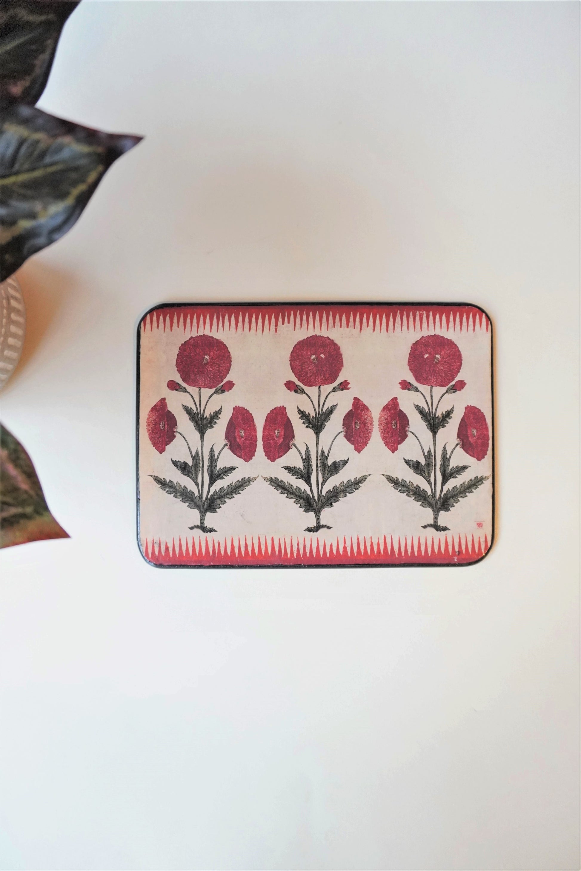 Traditional floral patterned hot plates wooden and lacquered. The set adds timeless beauty to your decor. They make for an elegant setting for your dining table or just as an addition to your home decor.