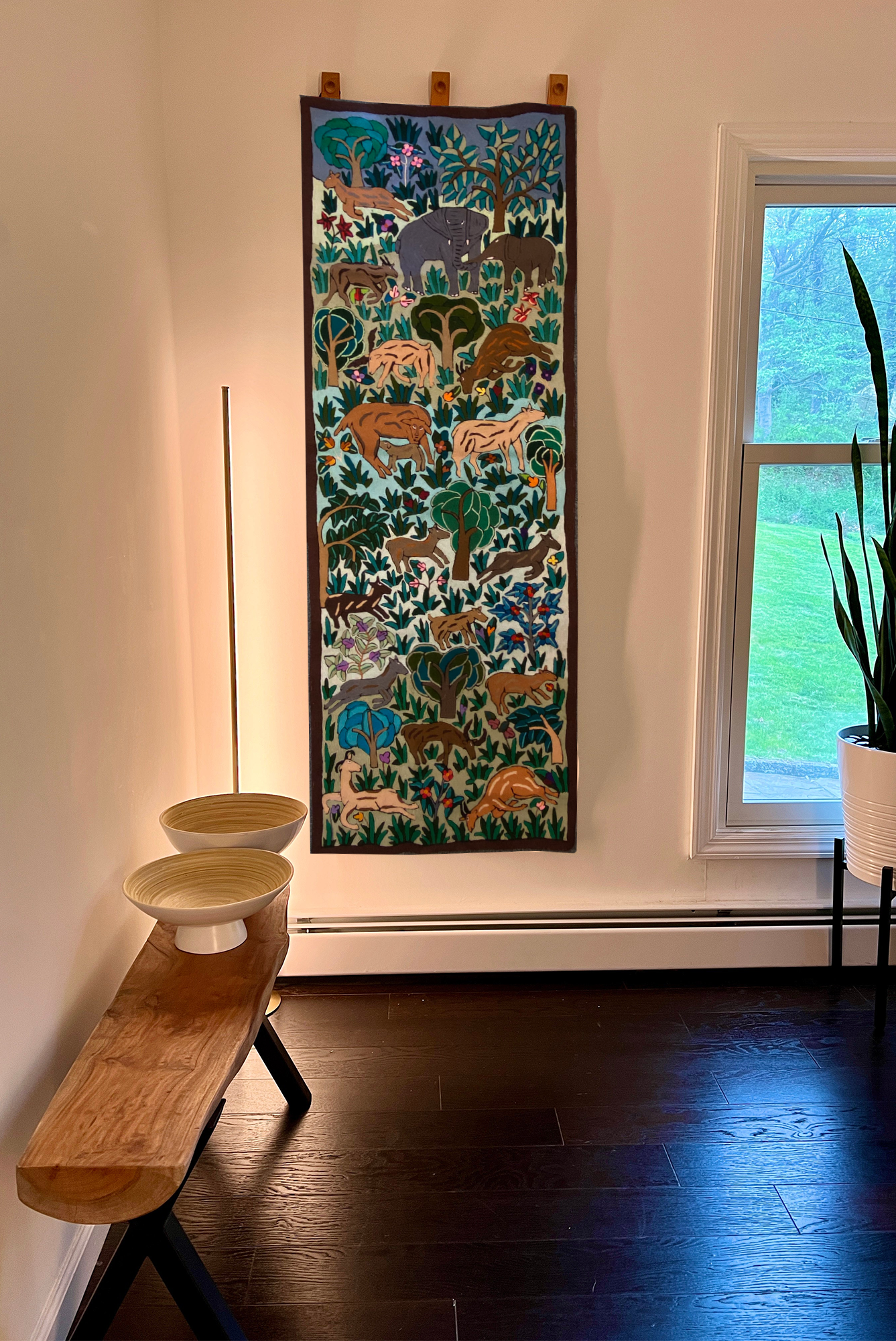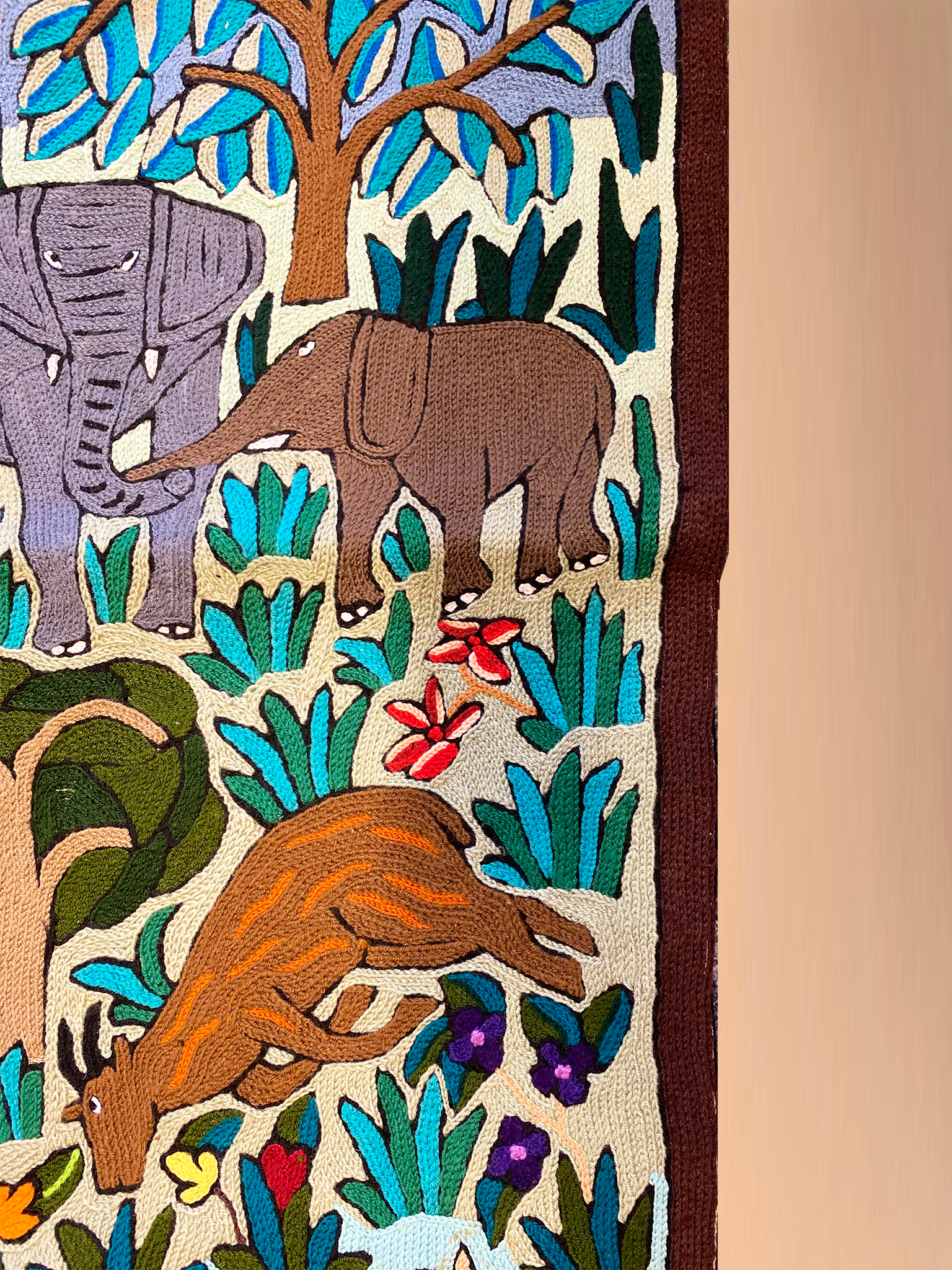 Our Gabba depicts artistry at its finest. Curated in Kashmir by artisans who have had the technique passed down to them by their forefathers, these pieces are truly extraordinary. Using simple tools such as a hooked needle and scissors the rugs converted to Gabba give an accented touch to the floors and even walls. The Gabbas can be either appliqued or embroidered. The artisan's spontaneity and creativeness have no limits. Kashmir is paradise on earth with nature playing abundantly. Hence, reflecting in the Gabbas story depicting animals and their importance to nature.