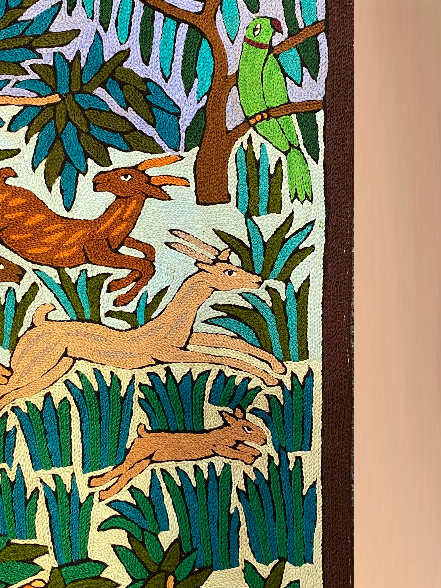 Our Gabba depicts artistry at its finest. Curated in Kashmir by artisans who have had the technique passed down to them by their forefathers, these pieces are truly extraordinary. Using simple tools such as a hooked needle and scissors the rugs converted to Gabba give an accented touch to the floors and even walls. The Gabbas can be either appliqued or embroidered. The artisan's spontaneity and creativeness have no limits. Kashmir is paradise on earth with nature playing abundantly. Hence, reflecting in the Gabbas story depicting animals and their importance to nature.