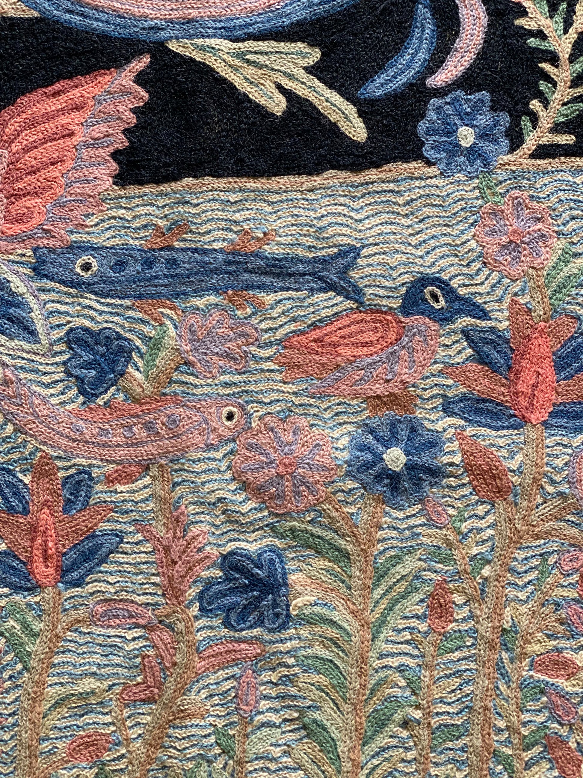 Our Antique 'The Wildwoods Tapestry' is a one-off piece and represents Wild Growth & Life in Water, on Land and in the Sky.