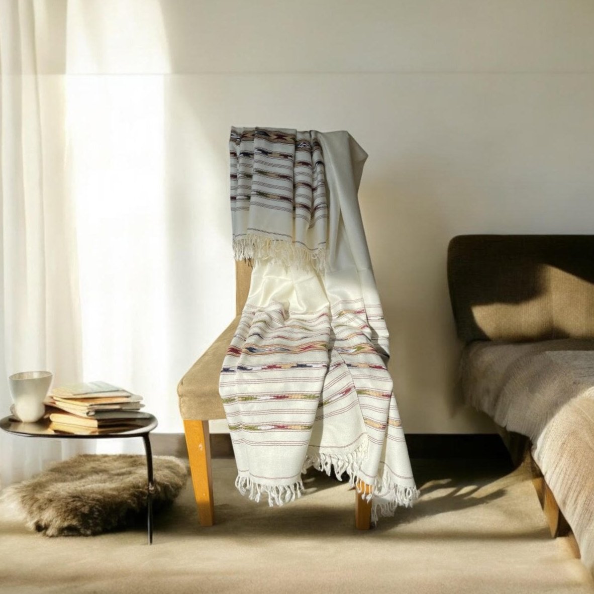 The Swat Shawl is a traditional and graceful piece of craftsmanship from Islampur, Swat, Pakistan. Handmade using an ancient technique on old khaddi looms, these shawls are woven from 100% soft and fine wool, which gives them a distinctive plaid texture and unparalleled softness. These shawls are highly regarded for their comfort, warmth, and elegance, making them popular for both their functionality and aesthetic appeal.